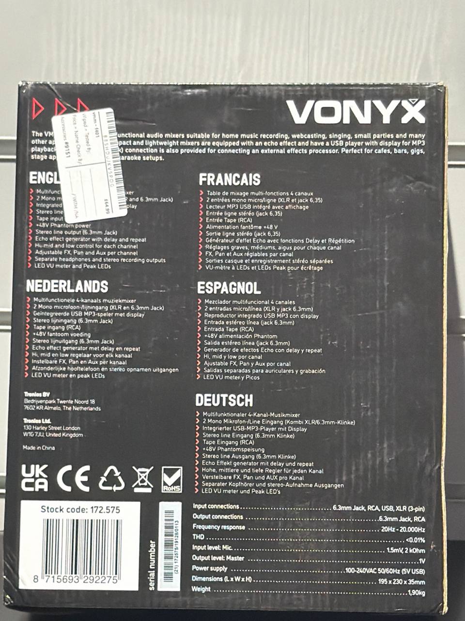 Vonyx VMM-F401 4 Channel Audio Mixer Console with USB MP3 Player, Phantom Power, Echo Effects, RCA Tape Input, Studio and Live Stage Mixing Desk for D