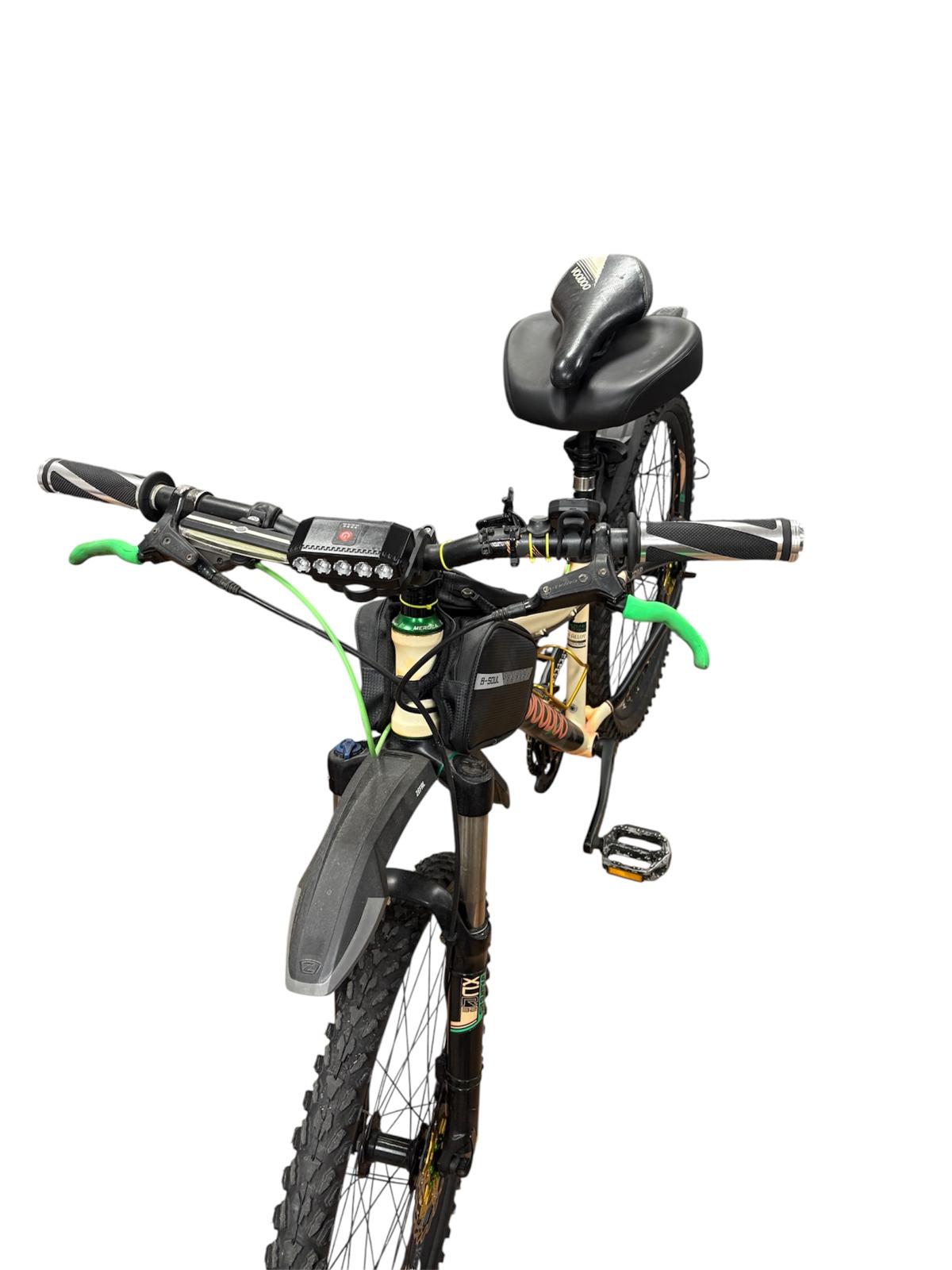 The Voodoo Nzumbi Mountain Bike " is the best choice for people who want to ride with confidence and control on all terrains. Its mountain bike frameset, Shimano CUES drivetrain, and rear cassette deliver smooth shifting. 13" frame and 23" wheel Comes with cushioned support seat and original sport seat. See pictures.