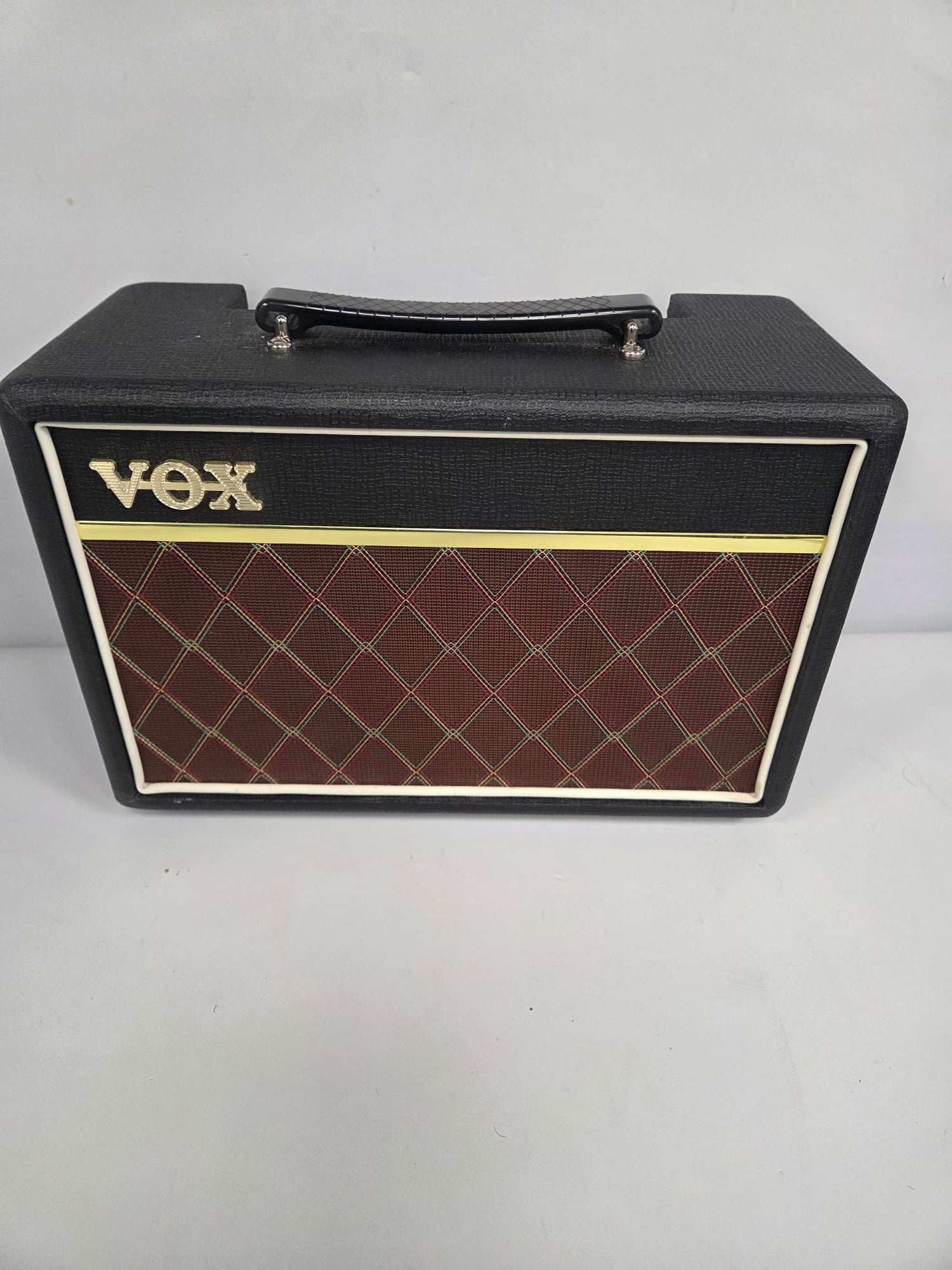 Vox Pathfinder 10 Guitar Amp Those instantly recognizable, warm British sounds you’ve come to expect from VOX are alive and well in the compact, 10-Watt Pathfinder 10 combo – plus a high gain capability that’s thoroughly modern! This 10-Watt, 1 x 6.5" combo’s eye-catching looks are also classic VOX and include basket-weave, leather-look vinyl, our distinctive diamond grille cloth and, of course, chicken head knobs! Small but all-important details such as gold beading and white piping have also been faithfully reproduced, perfectly recapturing the legendary look of VOX. Little Yet Loud! The Pathfinder 10’s powerful yet always tone-filled 10-Watt output, makes this amp perfect for home practice, backstage warm-up and recording. The Clean/Overdrive switch allows you to change instantly between clean and dirty sounds. With a mere press of this switch you can go from a crystal clear clean sound to our uniquely warm distortion; or from a slightly crunchy bluesy tone to a high-gain, modern-rock roar. Headphone/Lineout jack Want to practice late at night without disturbing your neighbours? No problem! Just plug your headphones into the Headphone/Line Out jack and away you go – your sleeping neighbours won’t hear a thing because using this jack automatically mutes the amp’s speaker! This jack also doubles as a specially filtered Line Out which is perfect for recording your amp without having to worry about setting up any pesky microphones. The Pathfinder 10 also features controls for Gain, Treble, Bass and Volume plus a Clean/Overdrive switch.
