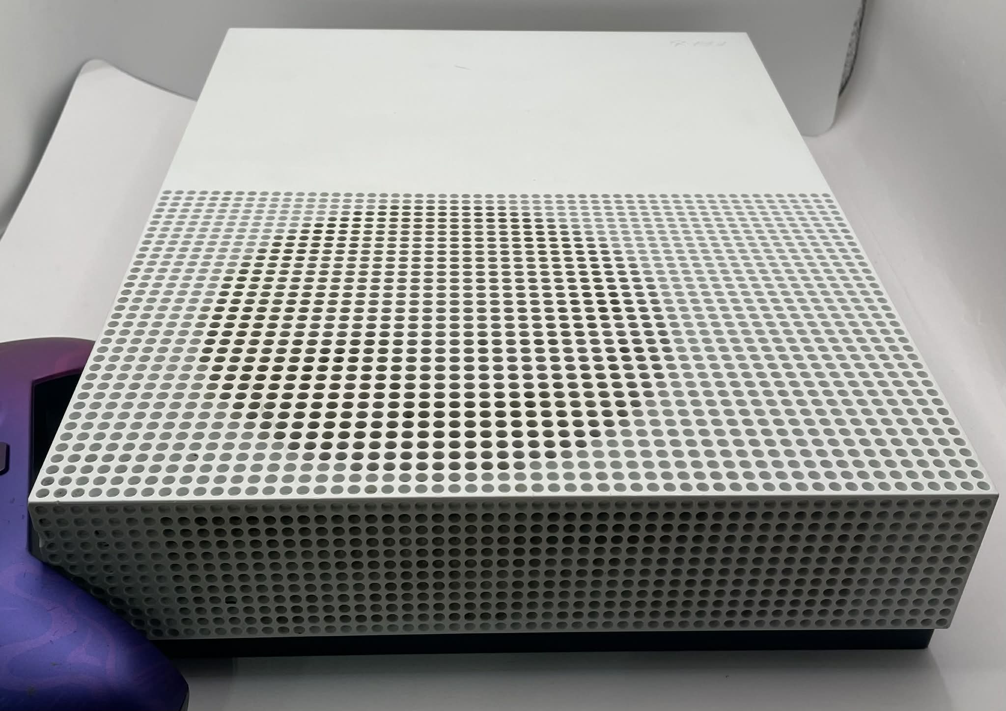 Xbox One S - 500GB Comes with the power lead and PDP Rematch Advanced Wired Controller. Model: 1681 Cosmetic wear seen in photos. Doesn't include box. Good working condition.