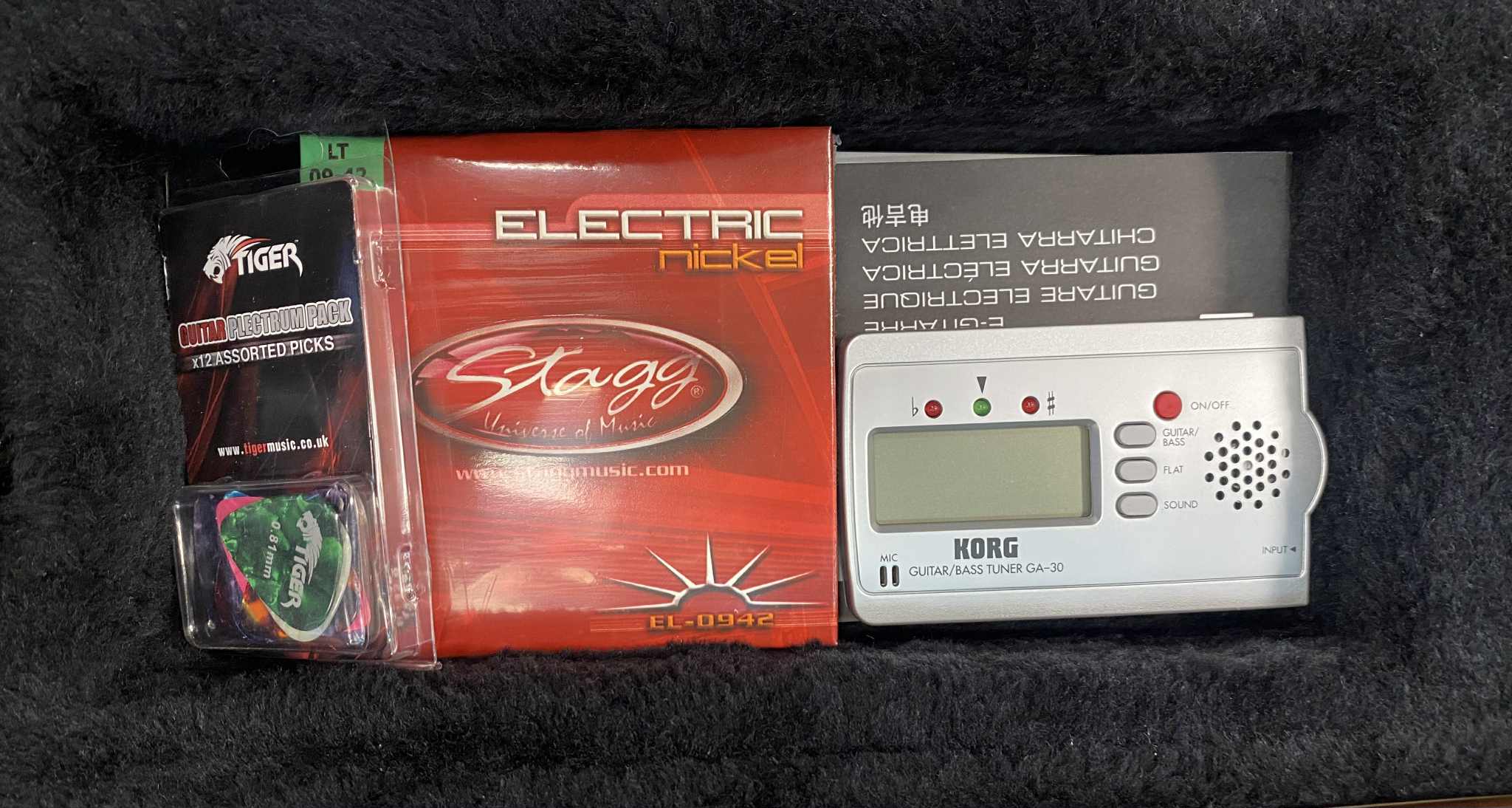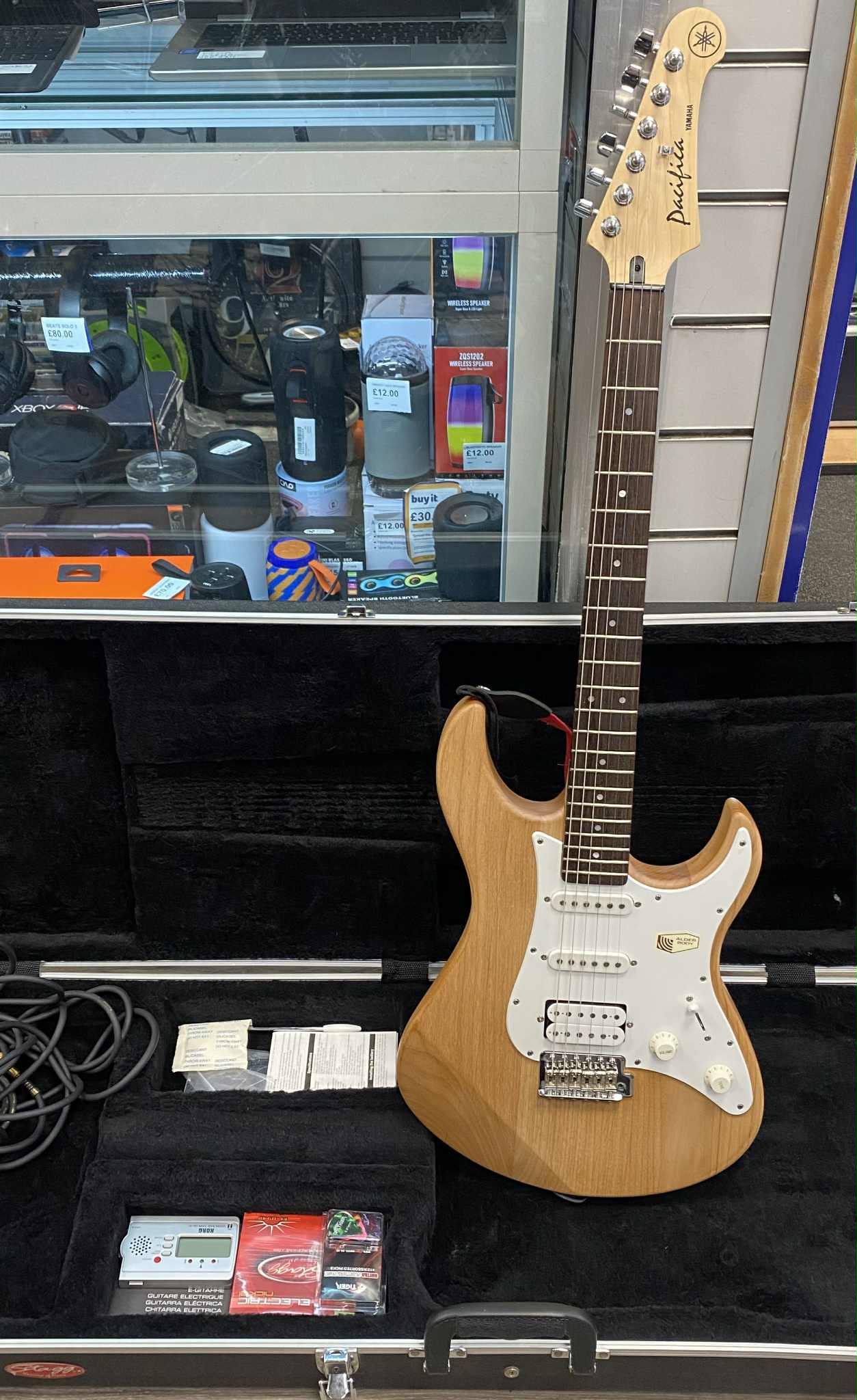 Yamaha Pacifica Starter Kit Comes with electric guitar, case, digital tuner, replacement guitar strings, cable, instructions, guitar picks. Good condition